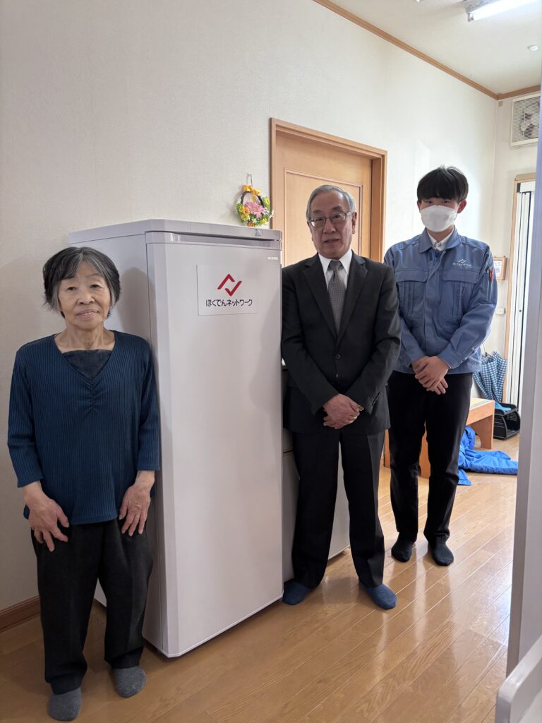 北海道電力ネットワーク株式会社 北見支店 遠軽ネットワークセンター様より、地域貢献活動の一環として、ぐるーぷほーむ春来へ冷凍庫をご寄贈いただきました。
